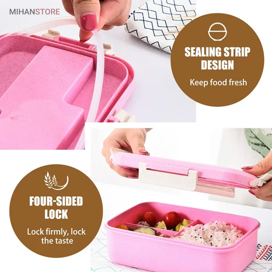این ظرف غذا و لانچ باکس از الیاف بامبو و پلاستیک از نوع پلاستیک غیر سمی و آنتی باکتریال هستند. فاقد مواد سمی هستند قابل استفاده در مایکروفر و ماشین ظرفشویی و فریزر میباشند این ظرف ها آنتی باکتریال هستند و از خراب شدن غذای شما جلوگیری میکنند کاملا بدون نشتی و دارای طراحی زیبا و سبک هستند. درب ظرف واشر دارد که از نشت مواد غذایی جلوگیری میکند میتوانید به راحتی مایعات و سوپ را داخل ظرف نگه داری کنید مناسب محل کار مدرسه باشگاه و پیک نیک و ....