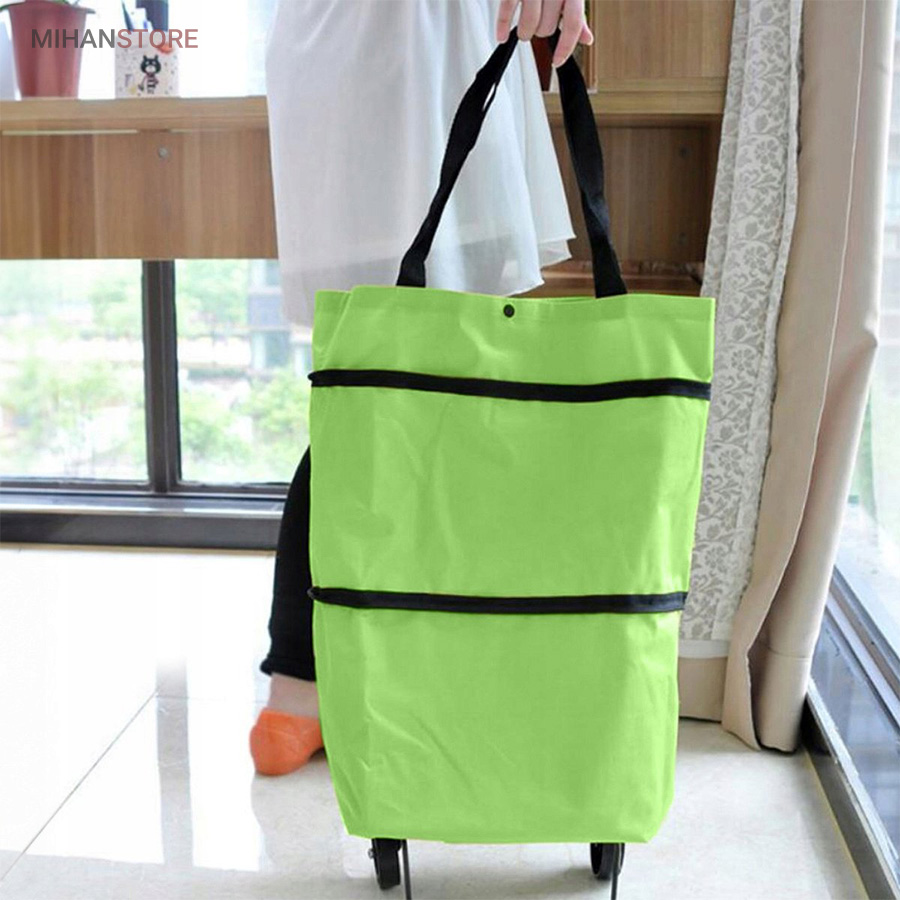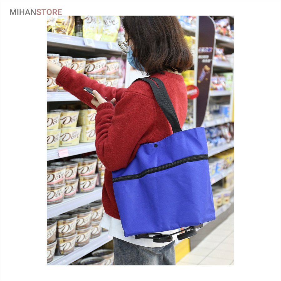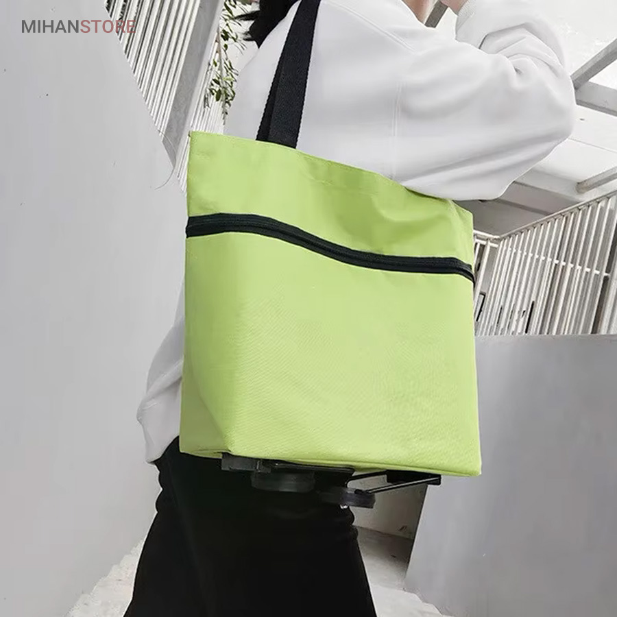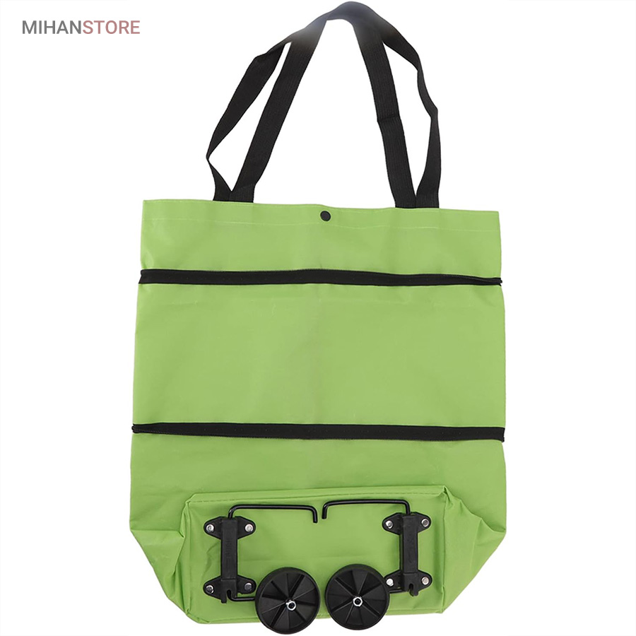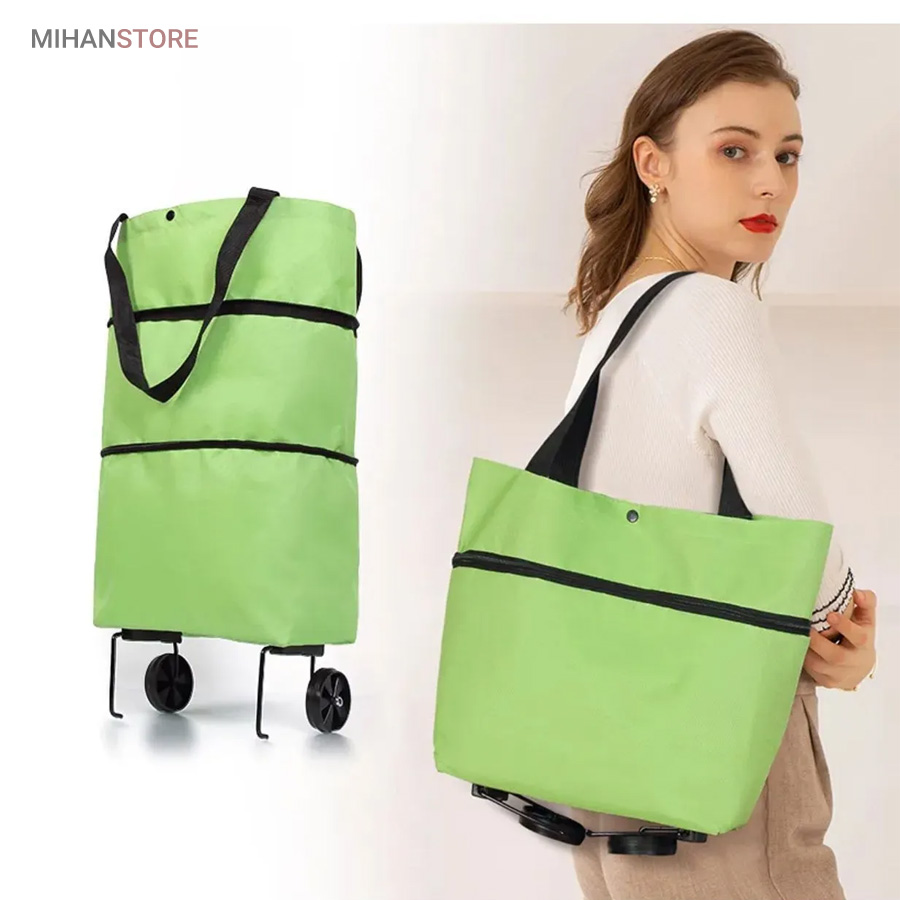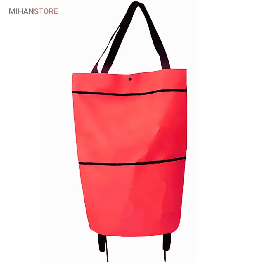 کیف خرید چرخدار تاشو دارای چرخهایی است که به شما کمک میکند بدون اینکه وزن خریدتان را بر روی شانهها یا دستهای خود احساس کنید، خریدتان را بهراحتی حمل کنید. برای استفاده از ساک خرید در حالت چرخدار، کمی تایرها را به سمت عقب کشیده تا از محل خود خارج شوند و در حالت چرخدار از ساک خرید استفاده کنید.