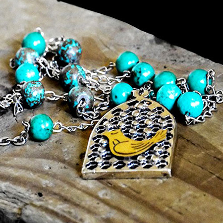 سریال شهرزاد این روزها حسابی در شبکه نمایش خانگی و به عبارتی در شبکه نمایش اینترنتی هم حسابی غوغا کرده. در این سریال بازیگر نقش شهرزاد که ترانه علیدوستی می باشد یک گردنبند هدیه می گیرد که به گردنبند مرغ آمین هم معروف است، به همین دلیل درخواست و تقاضای بینندگان این سریال باعث شد که تولید و فروش گردنبند مرغ آمین آغاز گردد. گردنبند مرغ آمین سریال شهرزاد با جنس استیل، ساخته شده با هنر دست ایرانی می باشد. پلاک و زنجیر این گردنبند استیل می باشد که مرغش آب کاری شده است، البته در ساخت زنجیر این گردنبد از فیروزه هم استفاده شده است که زیبایی محصول را دوچندان کرده است.